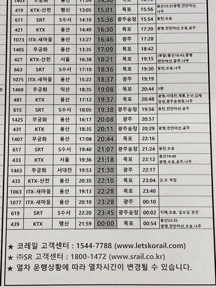 표에서 보시듯이 서대전을 경유하는 ktx의 경우에는 용산이나 서울까지 소요시간은 더 길어지지만
